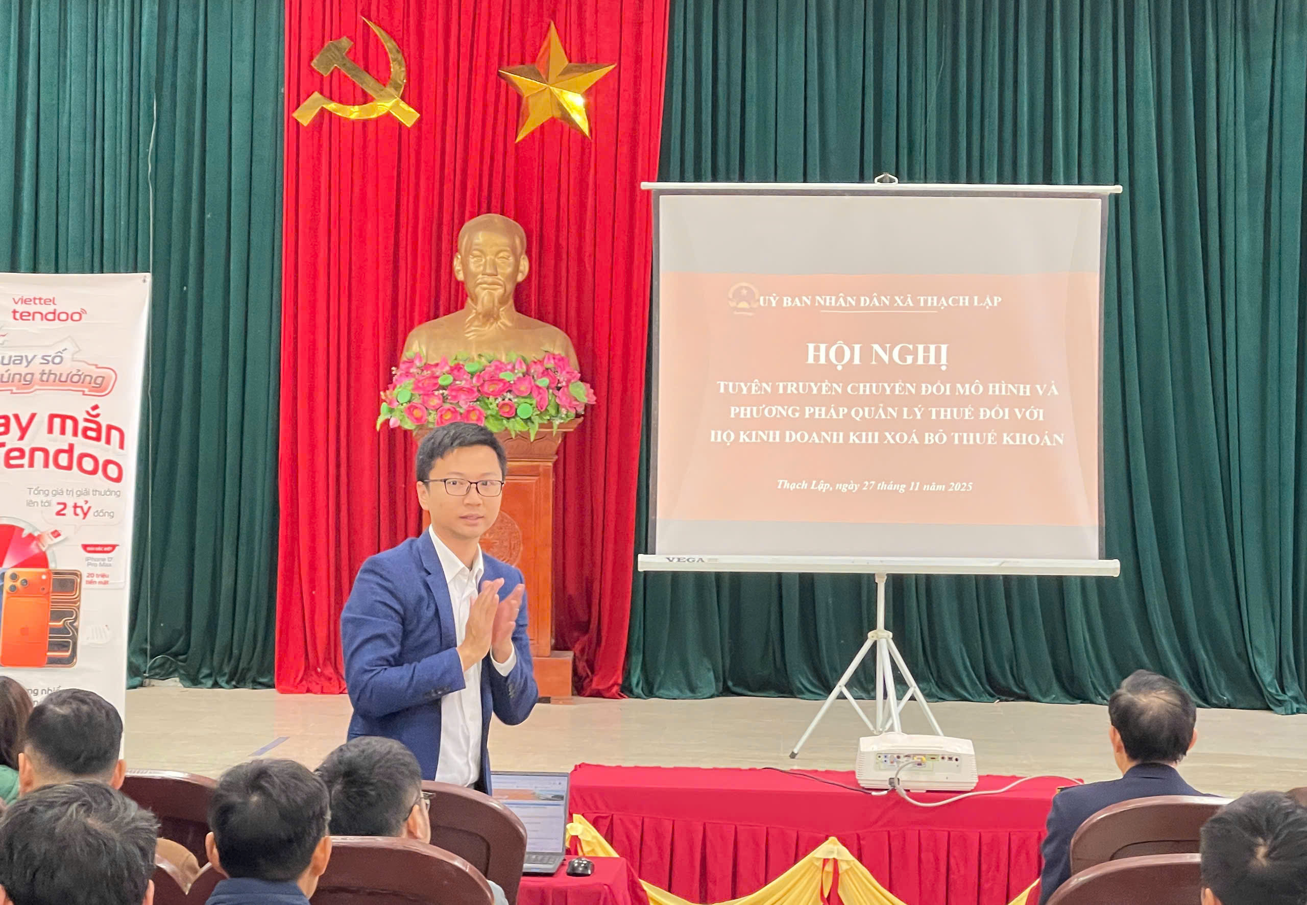 HỘI NGHỊ TẬP HUẤN TRIỂN KHAI CHUYỂN ĐỔI MÔ HÌNH TỪ THUẾ KHOÁN SANG KÊ KHAI ĐỐI VỚI CÁC HỘ TRÊN ĐỊA BÀN XÃ THACH LẬP