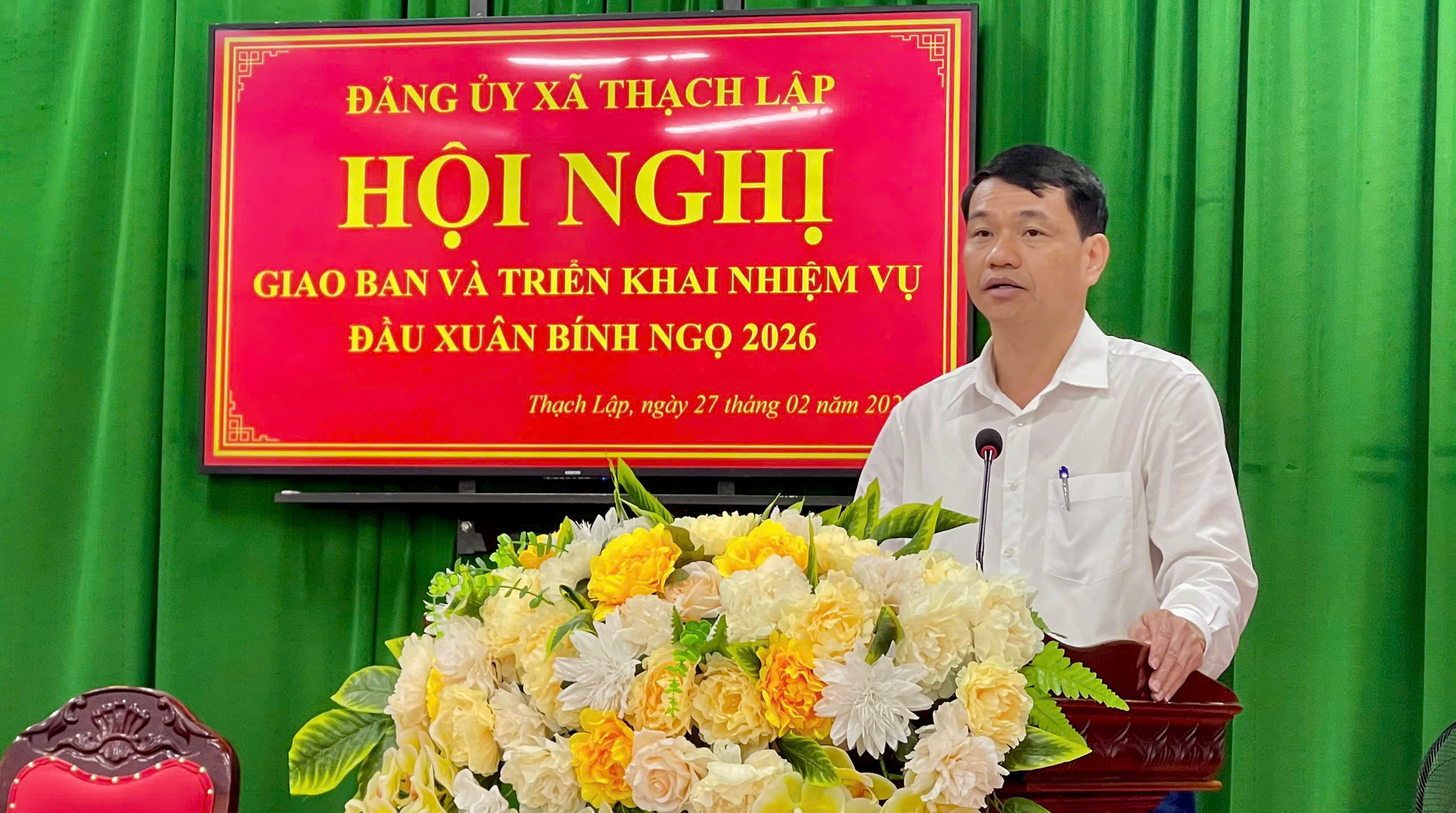 Sáng ngày 27/2/2026, Đảng ủy xã Thạch Lập tổ chức Hội nghị giao ban và triển khai nhiệm vụ đầu xuân Bính Ngọ 2026. Dưới sự chủ trì của các đồng chí: chí Phạm Văn Thiết Bí thư Đảng ủy, Chủ Tịch HĐND xã, Đồng chí Cao Viết Trường Phó Bí Thư Thường Trực Đảng ủy, Đồng chí Phạm Thị Lý Phó Bí Thư Đảng ủy, Chủ tịch UBND xã.