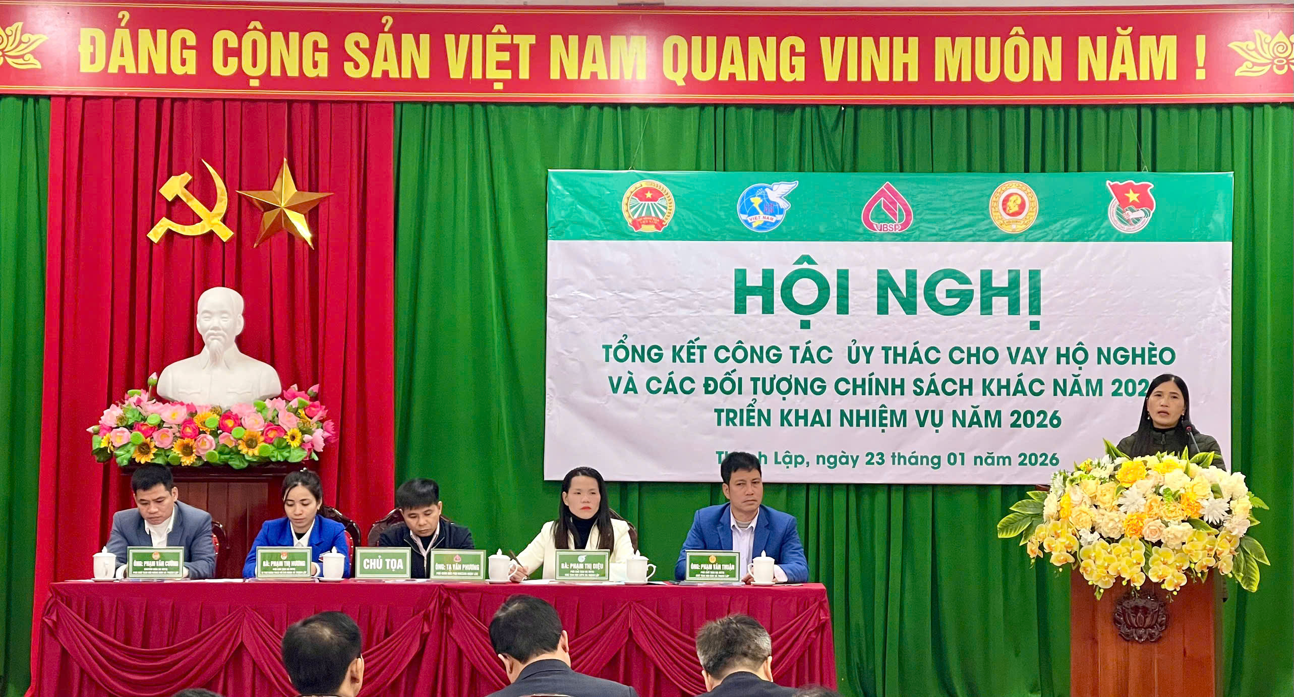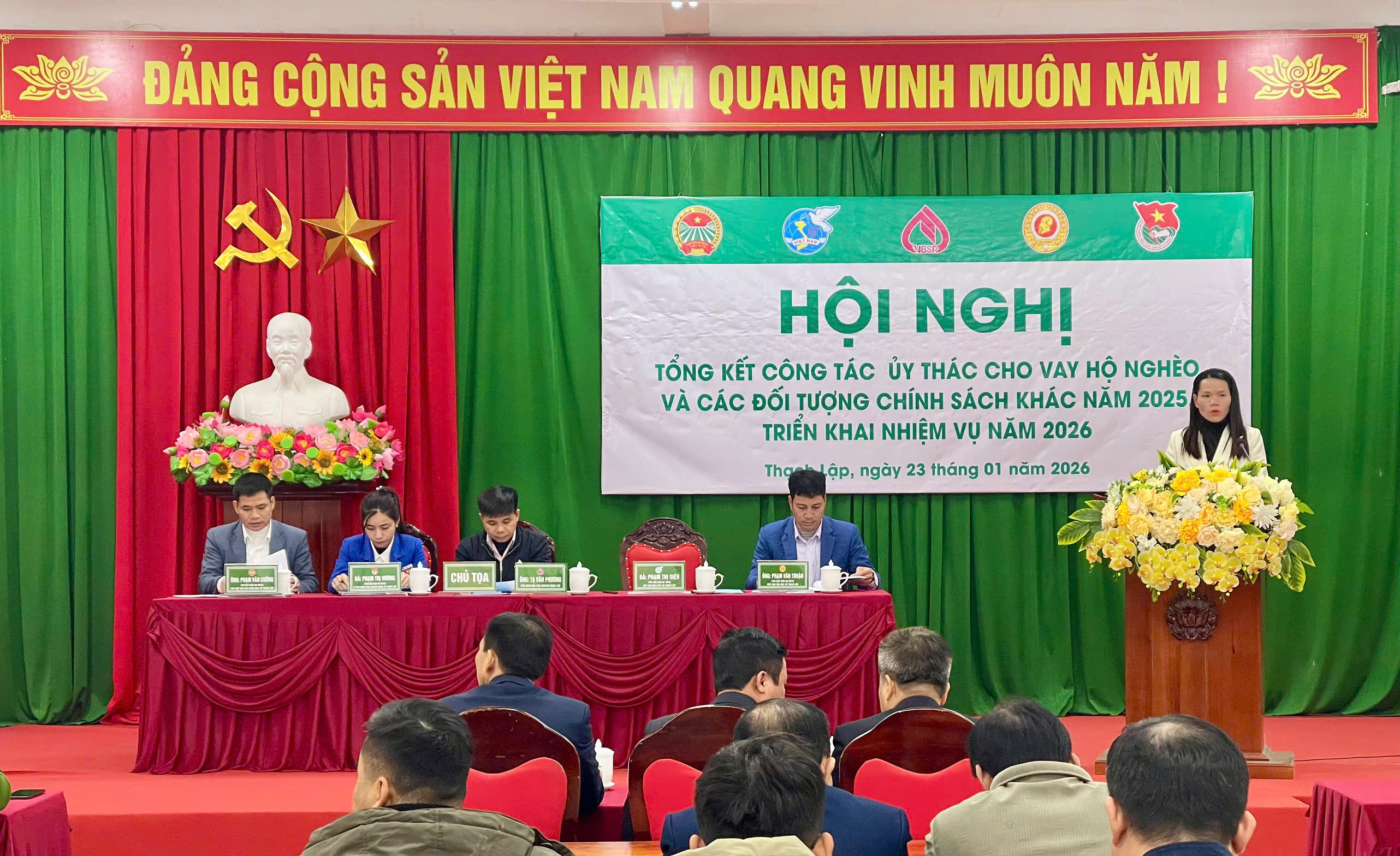 Chiều ngày 23/01, Phòng Giao dịch Ngân hàng Chính sách xã hội (NHCSXH) Ngọc Lặc phối hợp với các Hội đoàn thể nhận ủy thác xã Thạch Lập (Hội LHPN, Hội Nông dân, Hội CCB và Đoàn Thanh niên xã) tổ chức Hội nghị Tổng kết công tác ủy thác năm 2025; Triển khai nhiệm vụ năm 2026. Dự Hội nghị có đồng chí Cao Viết trường phó Bí Thư Thường Trực Đảng ủy, đồng chí Hồ Minh Hoàn, Giám đốc PGD NHCSXH; Các đồng chí Chủ tịch các hội: Hội LHPN, Hội Nông dân, Hội CCB và Đoàn Thanh niên xã; Các đồng chí Trưởng thôn, tổ trưởng Tổ tiết kiệm và vay vốn trên địa bàn xã.