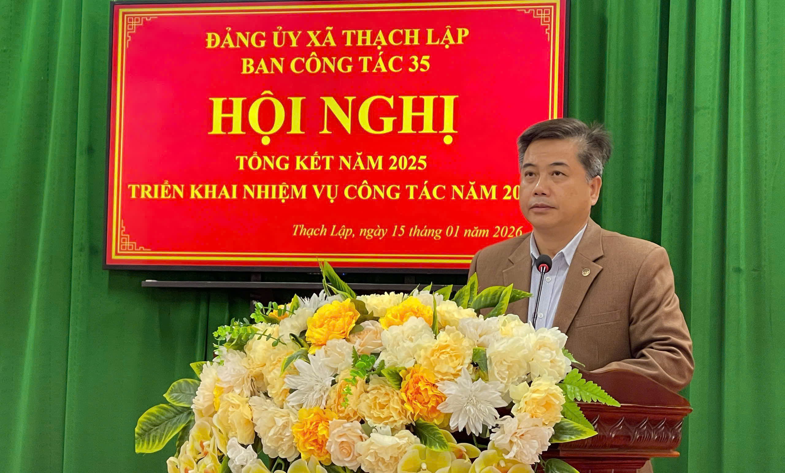 Chiều ngày 15/1/2026, Ban Thường vụ Đảng ủy xã Thạch Lập tổ chức hội nghị tổng kết công tác 35 , ban công tác năm 2025; triển khai nhiệm vụ năm 2026. Đồng chí Cao Viết Trường, Phó Bí thư Thường Trực Đảng ủy, Trưởng Ban chỉ đạo 35 xã chủ trì Hội nghị. Về dự Hội nghị còn có các đồng chí các phòng ban và các thành viên trong ban chỉ đạo 35.