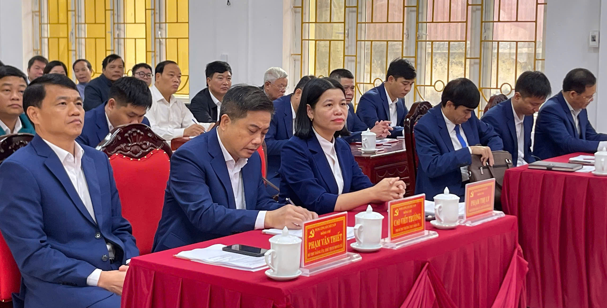 Bí thư Đảng ủy, Chủ tịch UBND xã đồng chủ trì hội nghị. Tham dự hội nghị có các