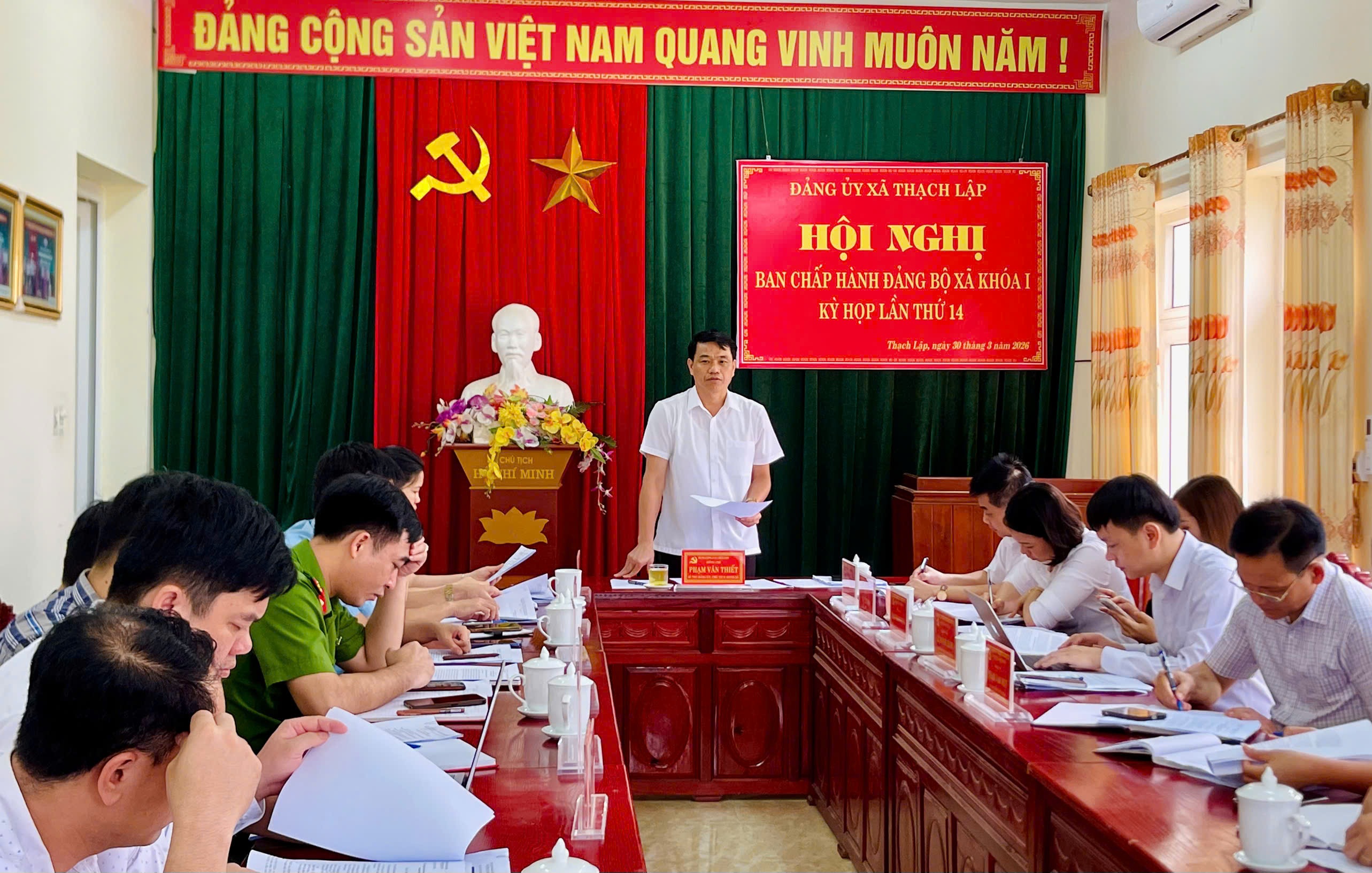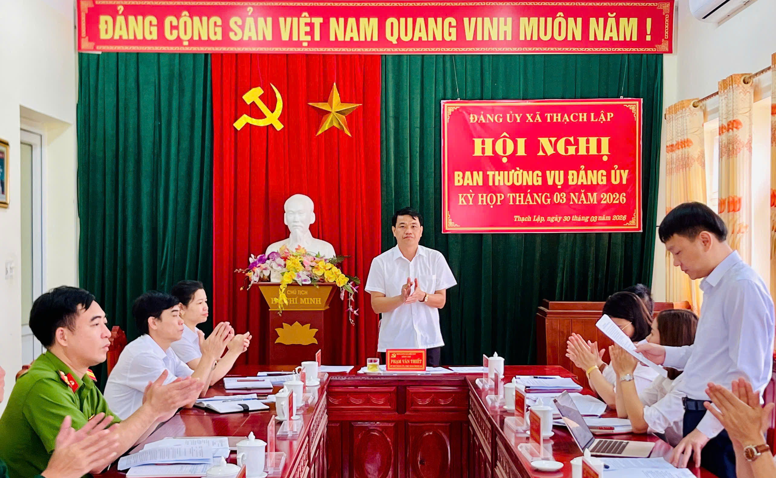 Sáng ngày 30/3/2026, tại trụ sở Đảng ủy xã Thạch Lập, Ban Thường vụ Đảng ủy xã đã tổ chức Hội nghị Ban Thường vụ và Ban Chấp hành Đảng bộ xã nhằm thống nhất chủ trương, chỉ đạo triển khai các nhiệm vụ trọng tâm trong thời gian tới Tham dự hội nghị có đồng chí Phạm Văn Thiết Bí thư Đảng ủy, Chủ tịch HĐND xã, đồng chí Cao Viết Trường, Phó Bí Thư Thường trực Đảng ủy xã, đồng chí Phạm Thị Lý, Phó Bí Thư Đảng ủy, Chủ tịch UBND xã; các đồng chí trong Ban Thường vụ, Ban Chấp hành Đảng bộ xã. Đồng chí Thiết Bí thư Đảng ủy xã chủ trì Hội nghị.